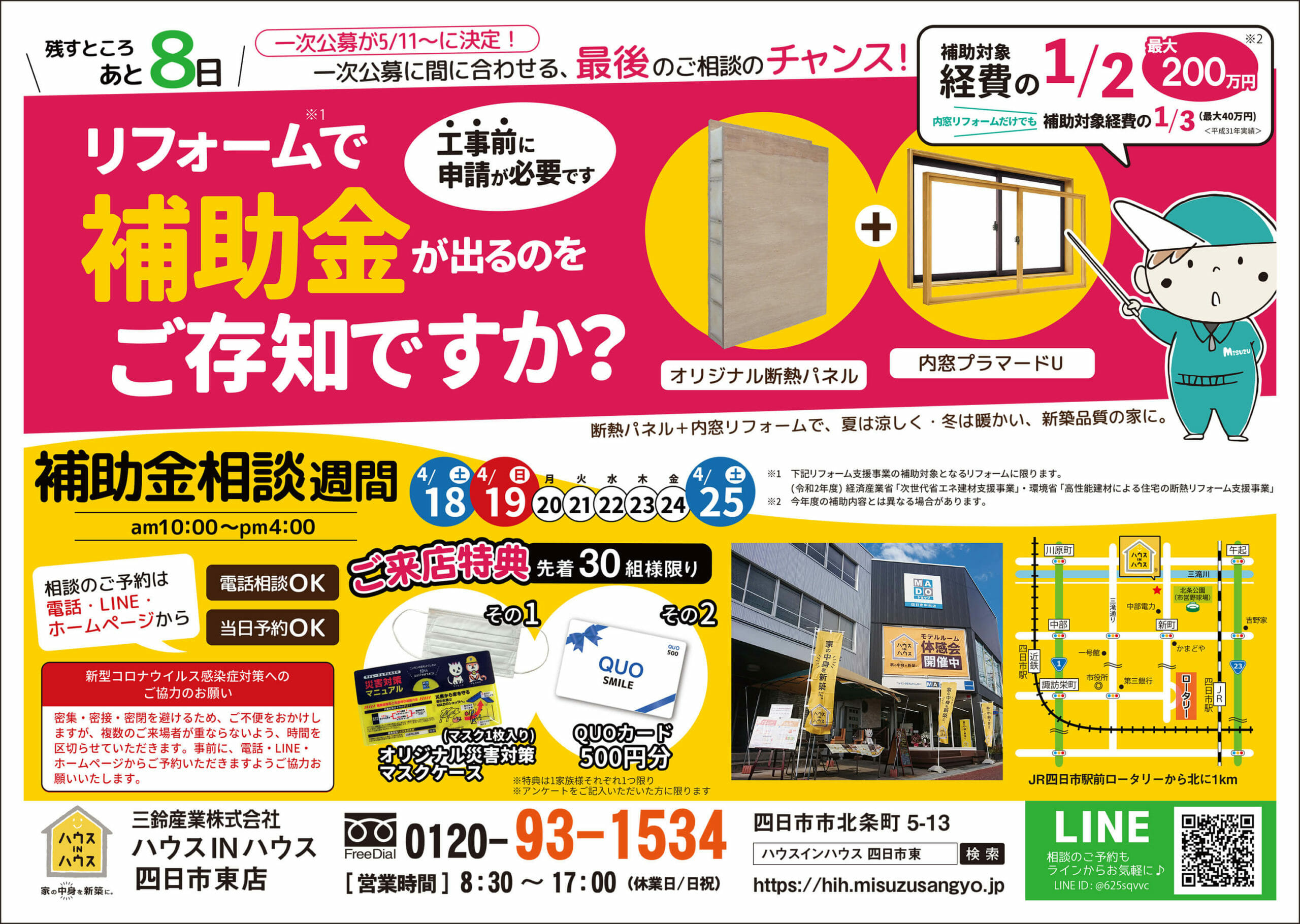 4/18日(土)~4/25(土)の1週間、「補助金相談週間」として、補助金を活用したリフォーム相談を受付中!